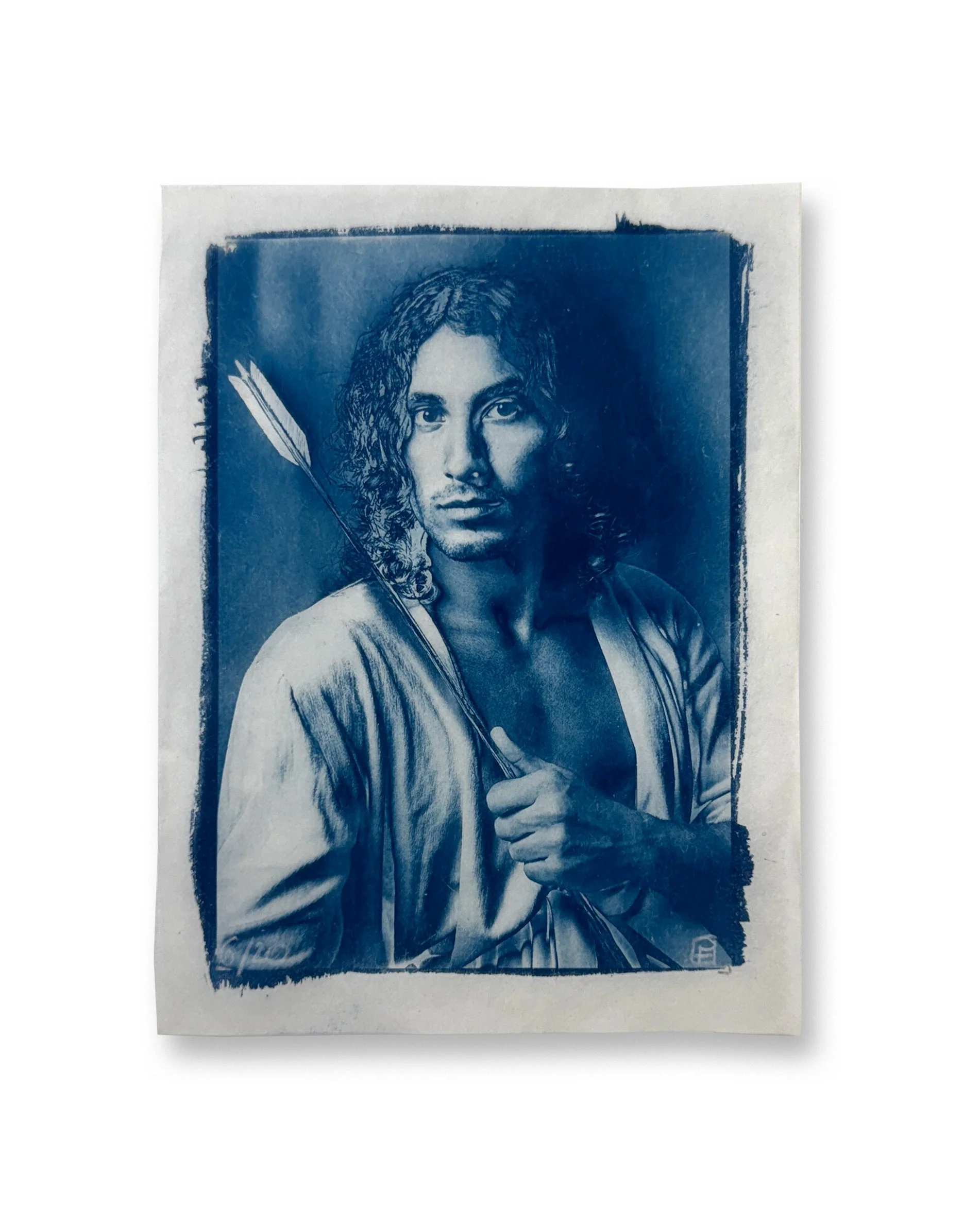 Saint Sebastian, 2025Cyanotype on Japanese tissue paper16.5x12.5cmEdition of 20Please note that the photosensitive emulation is applied by hand to the paper, which can result in different border appearances around each image.